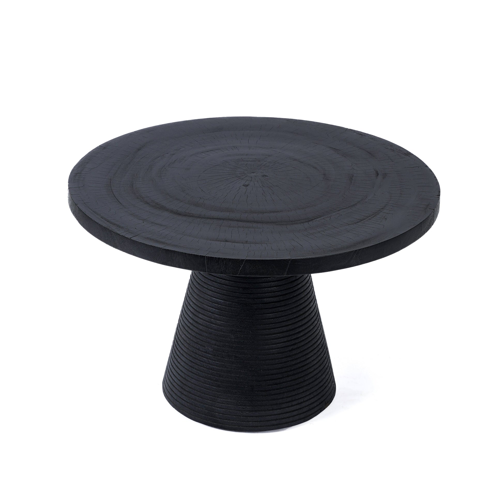 The Hi Matata Coffee Table in black combines natural suar wood with refined design, adapting seamlessly to any interior aesthetic. Its polished surface serves as an elegant display for books, décor, and refreshments. Suar wood's distinctive grain and tonal variations create visual interest, though the material naturally expands and contracts with moisture changes, potentially developing cracks over time. Annual protective oil treatment preserves the finish and maintains its original appearance.